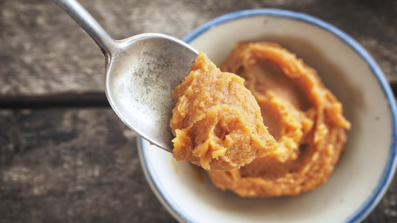 2. Ett japanskt livsmedel som framställs genom jäsning av sojabönor, havssalt, spannmål och vatten under inverkan av en mögelsvamp